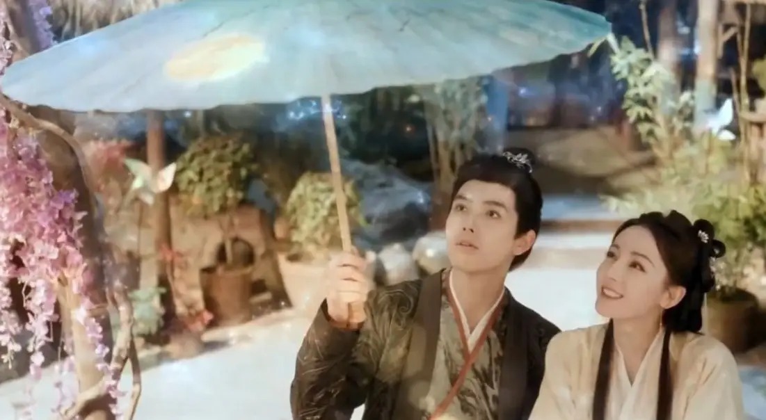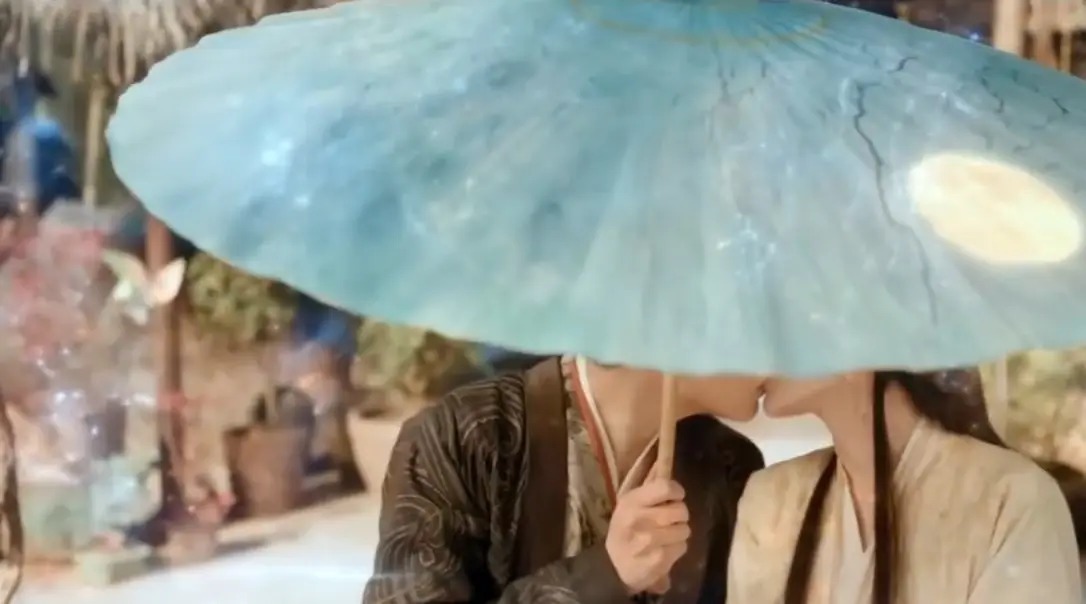 阳光下,段胥撑伞,贺思慕在旁边,两人一同在伞下遐想,阳光下的月色也很美吧?