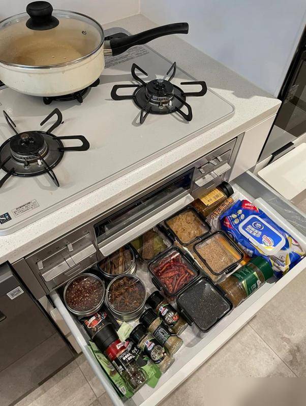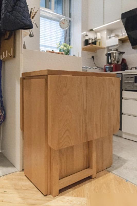 厨房虽空间狭小,却硬是打造出U型台面和小家电高柜,折叠餐桌可藏于柜中,拉出即可用于聚餐。小空间要想摆脱憋屈感,就得依靠“偷面积”的巧妙方法,比如拆除非承重墙来扩展空间,搭配日式三眼灶台与小烤箱,做饭效率大幅提升。